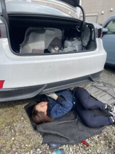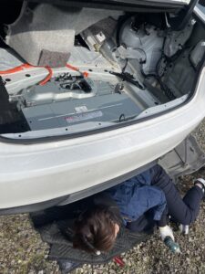 今回の修理はIS300h。こちらの車両は下からネジが入っているのでジャッキアップが必要な車種になります。