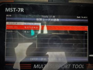 電池異常のエラーコードの確認、ΔSOCが54.5%とここ最近の修理の中で1番高いです。
